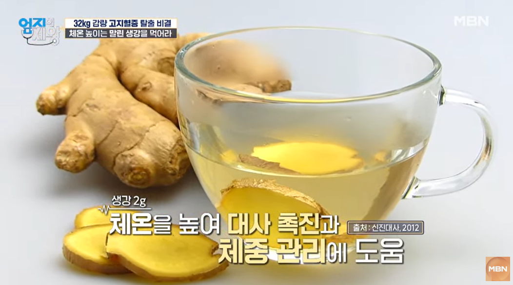 생강은 따뜻한 성질을 가진 식재료로, 오장육부의 냉기를 제거하는 효과가 있다고 동의보감에도 기록되어 있습니다. 특히 생강을 말려서 만든 건강(乾薑)은 생강보다도 따뜻한 성질이 더 강해져 체온을 높이는 데 도움을 줍니다. 체온이 1도 올라가면 기초대사량이 약 13% 증가하는데, 이는 같은 활동을 하더라도 더 많은 칼로리를 소모하게 된다는 뜻입니다.